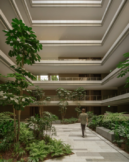 The buildings are designed for porosity and permeability. Communal gardens, deep balconies, and sun-shading elements articulate layered façades that balance privacy with openness, maximizing natural ventilation and passive cooling. Building orientations harness daylight and prevailing winds, façades are designed to reduce solar gain, and green roofs enhance thermal performance while capturing rainwater for irrigation. The landscape weaves together sky gardens, green terraces, and semi-public courtyards, creating vertical and horizontal layers of greenery throughout the development.