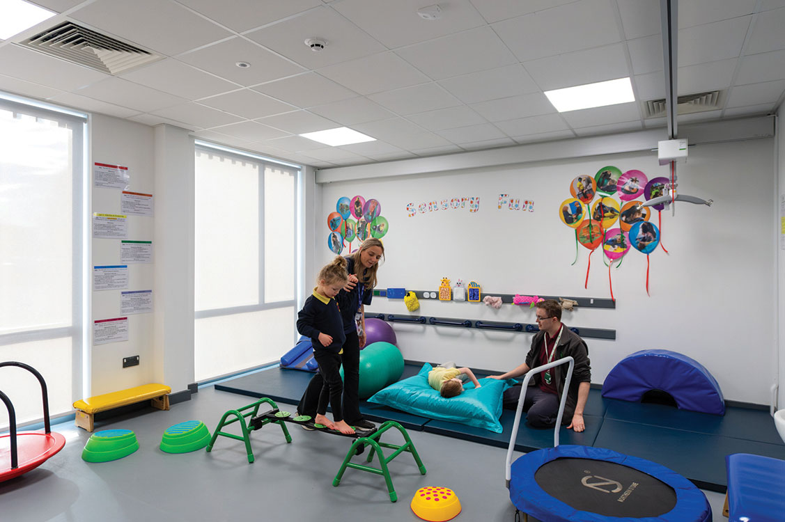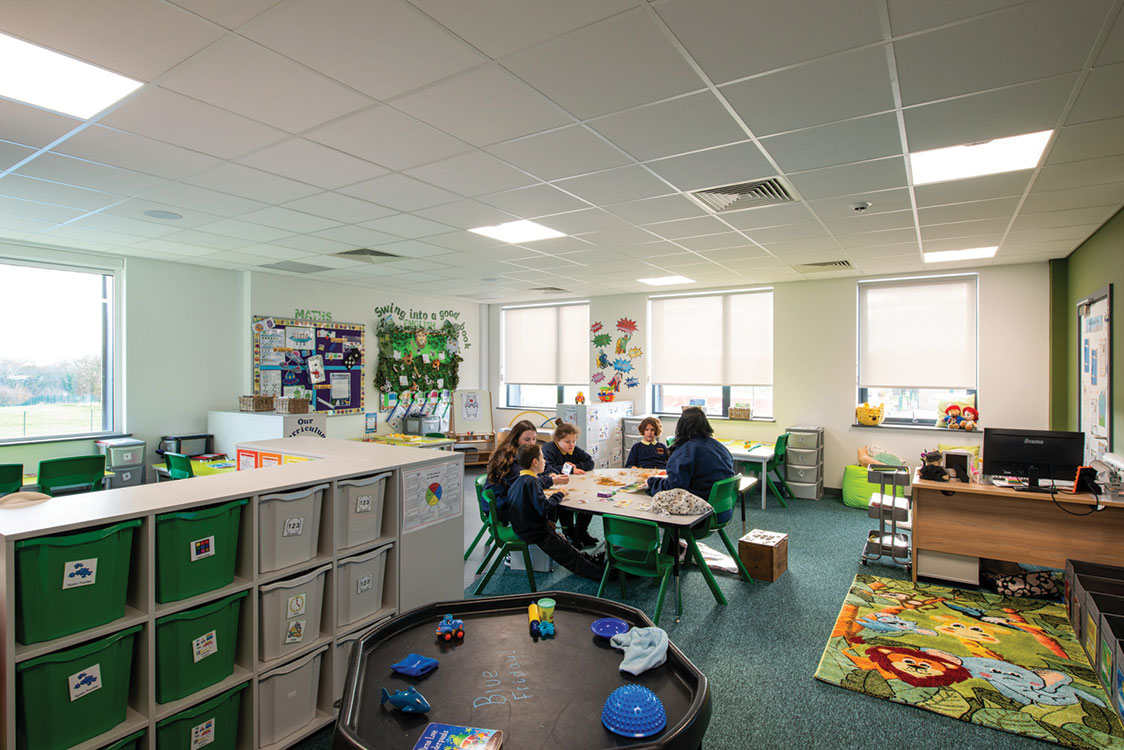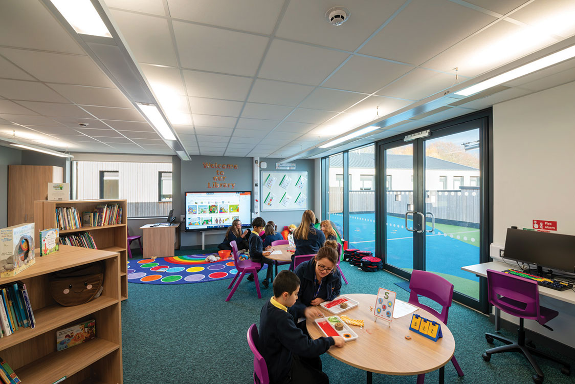 Lighting and ventilation were also carefully considered, with both designed to meet DfE standards. Lighting in particular was tailored in certain areas within the school such as the specialist sensory rooms. The ‘light rooms’ in particular feature sensory lighting and interactive elements such as bubble walls, an LED wall wash which creates an even wash of light across the surface, a solar projector, bubble column, fibre optics, infinity tunnel, an interactive wall and sound system.