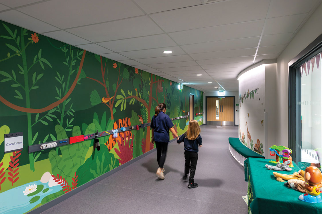 This is an area where the AtkinsRéalis’ experience within the education sector proved fruitful as well. Work on previous projects “informed the approach,” explains Mognini, “particularly blending indoor and outdoor spaces and creating shared circulation areas.” Through their advisory work with the DfE and project experience, the practice had developed “extensive SEND design knowledge” which fed into the project, helping with the creation of features such as sensory rooms and physiotherapy spaces.
