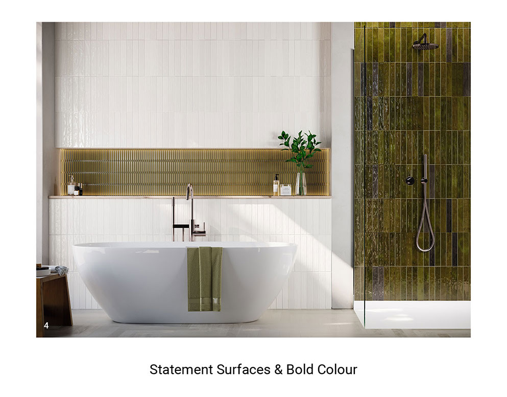 “Tile layout and detailing are just as important as the material itself. Vertical installations can visually elongate walls, while wood-effect tiles introduce a contemporary edge. Combining matt and gloss finishes is a subtle way to define wet zones and add tactile contrast. Finally, attention to grout colour, coordinated brassware and practical details such as recessed niches ensures that the finished space feels considered, cohesive and refined.”