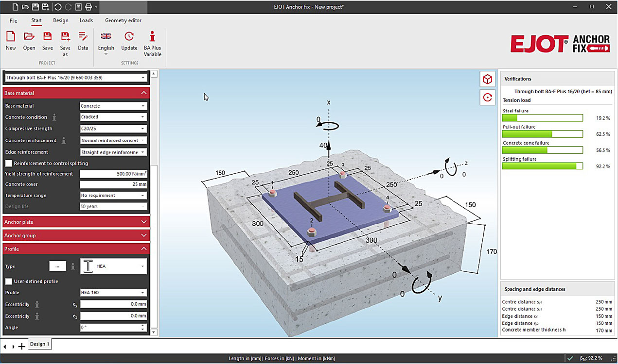 “In creating AnchorFix 2025, our developers have achieved a new software release which is still based on the latest ETA data, the latest design approach, governed by EN1992-4, but with the ability to plot the actual connection design within the program as a non-regular baseplate or anchor group arrangement.