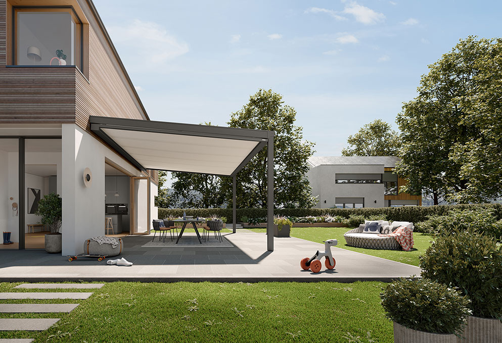 When building a conservatory or installing glass canopies over a patio, you should therefore plan to incorporate solar protection immediately. And the best way to do this is with automated technology, recommends Michael Gerling. “Solar protection functions best if it shades a room before the heat can get inside. This can be controlled using sensors and functions that automatically extend and retract the awning.”