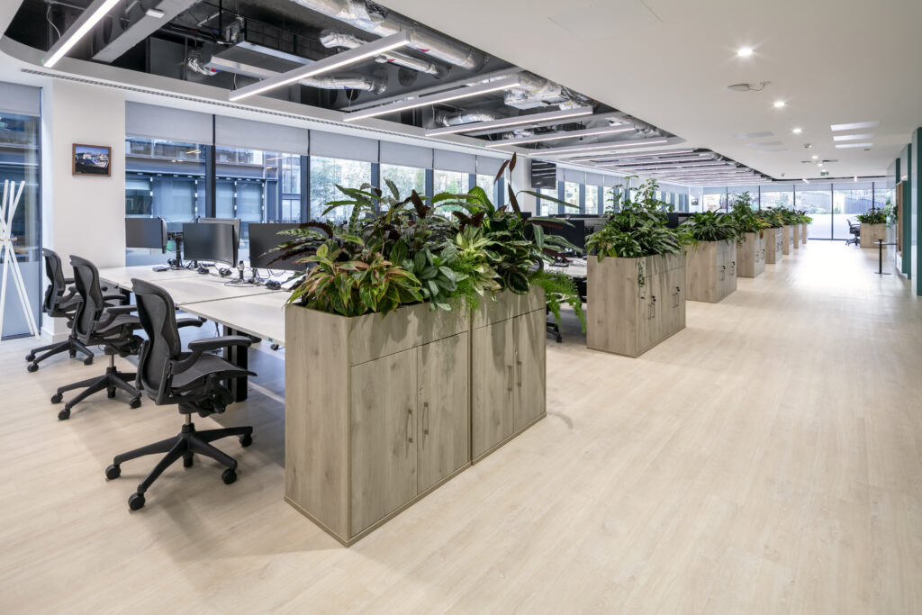 The more complicated aspect however was managing the logistics including moves and relocations, off-site storage and tracking and coordination of the reuse strategy. In Glasgow, the team had to manage the transitioning of staff from a multi-floor setup to a single consolidated floor in a new building. This required careful planning to maintain productivity. In Edinburgh, one floor was decommissioned to enable fit out whilst another was intensified with additional desks, creating temporary arrangements that evolved into longer-term solutions.