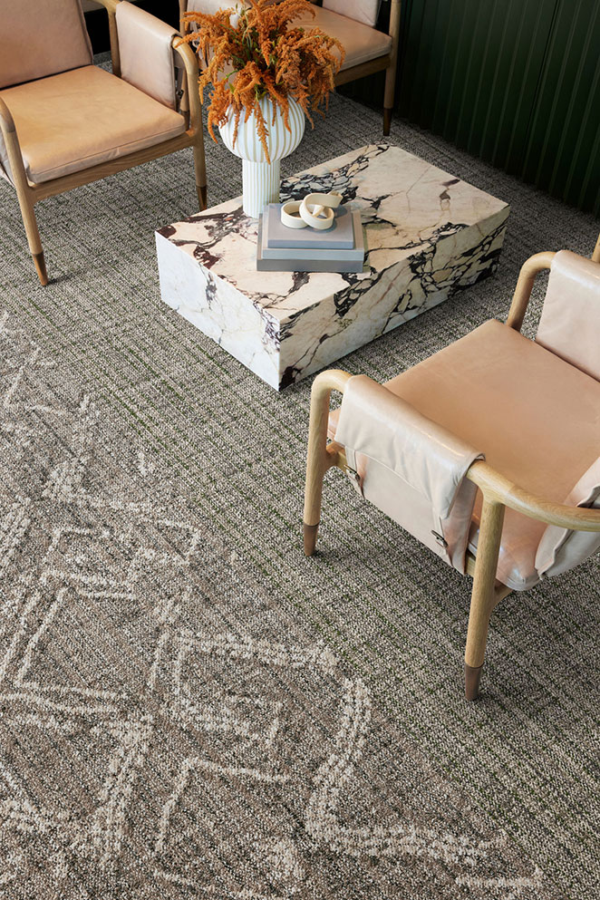 From traditional textures to bouclé and batik styles, woven aesthetics continue to gain favour across commercial environments. Crafted Connections offers three styles illustrati ng each of these visuals in one coordinated collection: Thread Lightly, Bound to Last, and Dual Effect. Each provides endless possibilities for layered design, with easy zoning and wayfinding across the coordinating styles.