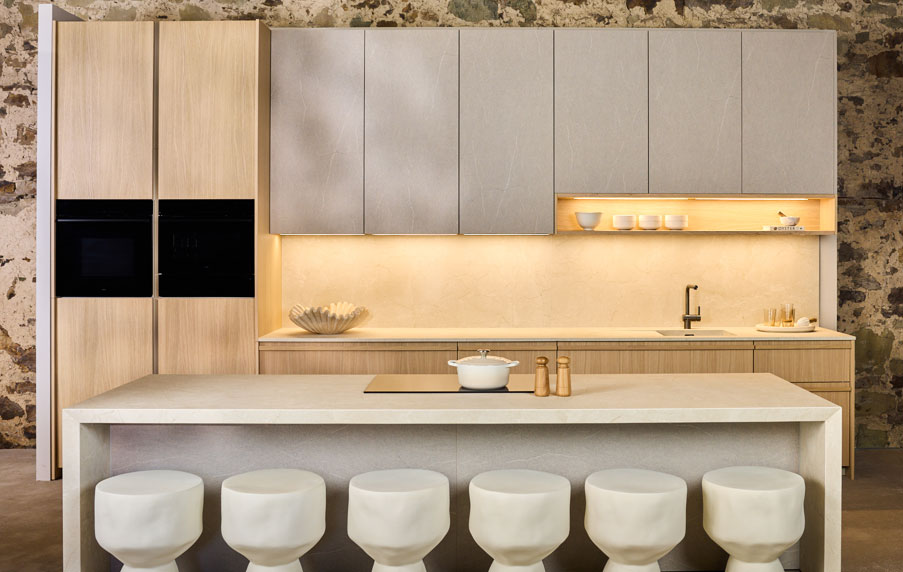 Silent River champions the use of matt finishes and worktops inspired by natural stone, enhanced by gentle curves and rounded forms that soften the overall composition. Open shelving, warm-toned lighting, and thoughtfully placed biophilic elements – such as indoor planting or access to natural daylight – add an airy, uplifting quality to the space. More than a kitchen scheme, Silent River embodies a design philosophy rooted in mindful living, offering retailers, designers, and architects a serene, flexible canvas shaped by timeless materials and calming, nature-led design.