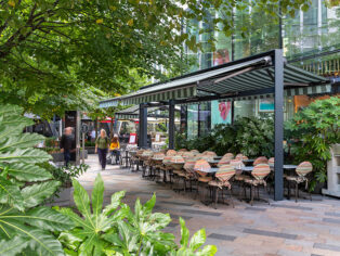 Anyone who runs an outdoor catering business in London battles the same problem every day: the weather. Rain, wind and the early onset of dusk significantly shorten the usable time for external terraces, and thus reduce both the quality of stay for guests and the economic return for operators. “When the weather wasn’t in our favour, we had little to no visitors on the Patio,” says Andras Stumpf, manager of the Timmy Green restaurant at Nova Place. The requirement for Nova Place was therefore clear: weather-independent, comfortable seating areas that blend stylishly into the open, light-flooded atmosphere of the square and invite people to socialise in the evenings thanks to their warmth and soft lighting.