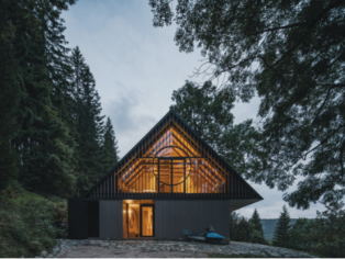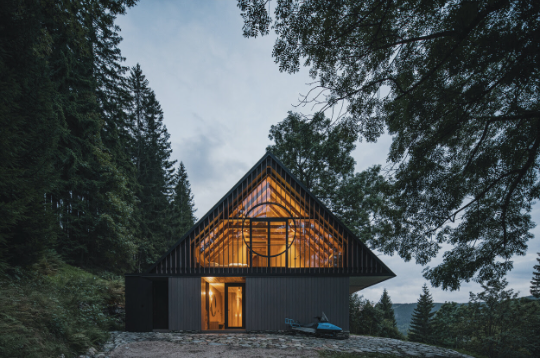 On the slope above the Krkonoše village of Strážné, a timber log cottage once stood. It was swallowed by the era of mass recreation, along with respect for ownership, craftsmanship, people, objects, and nature. The original house was concealed beneath layers of alterations, extensions and makeshift additions, poor repairs, and artificial panel cladding.
