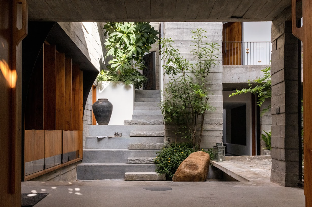 ● House of Memories – Studio Gravitas in collaboration with Eleemente & Bodh Design Group (Karnataka, India) Located in suburban Karnataka, this home is a modern tribute to the traditional “Thotti Mane” courtyard style. Designed for a multi-generational family, it navigates a tight urban plot to create a space filled with nostalgia and comfort. The architecture weaves together history and memory, using specific design choices to balance solitude with socialising. By blending local materials with climate-responsive design, it redefines domestic life, offering a sanctuary that deeply connects the owners to their heritage and the seasons.