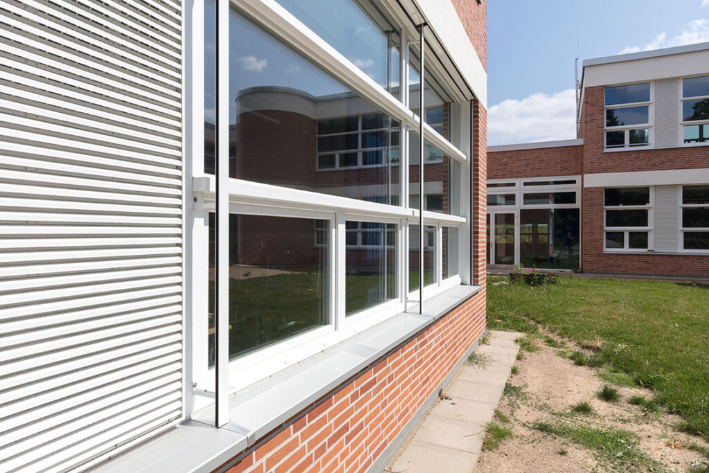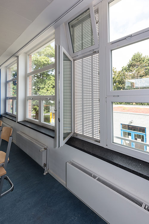 With a free airflow of 40.5%, the louvres provide effective cross-ventilation. Two units per classroom, placed diagonally, ensure optimal air circulation. The entire €7 million project was funded by the Lübeck Possehl Foundation and executed by the city’s building management.