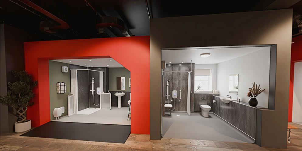The spaces in the virtual showroom include a dementia-friendly bathroom, options for retirement and care settings, and wet rooms and bathrooms suitable for social housing. Three display walls also feature shower seats, grab rails, and electric and mixer showers. The virtual showroom is also highly interactive, with many of the products in the bays offering quick links to specification sheets or videos for visitors to access more information. It is also possible to alter the colour of some of the bathroom wall panels and see AKW’s Bathroom for Life – a bath-to-wet room and wet room-to-bath solution – in action.