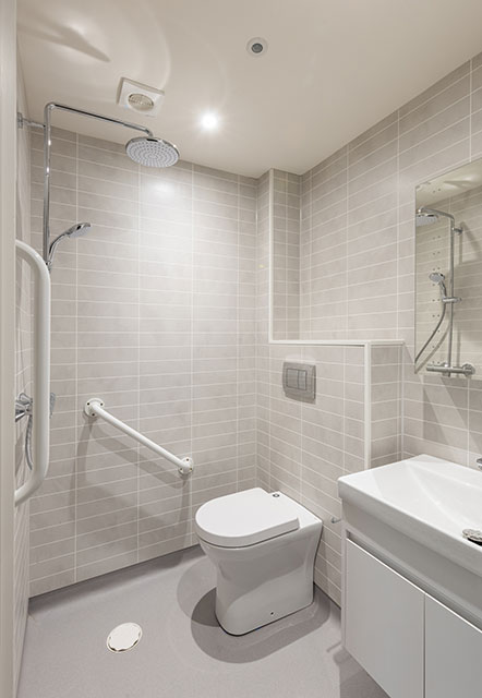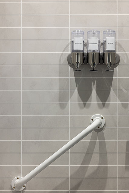 Altro Pisces is an award-winning, domestic-look specialist flooring for a ‘home from home’, warm feel in wet environments; designed for shoe and bare foot use to keep you safe with common contaminants such as shampoo and conditioner. Altro Tegulis is a tile-effect wall panel with innovative etched grout lines and multiple colour and design palette options. It is easy to clean, robust and hygienic.