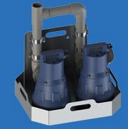 Dual-pump frame with 2 × Sanisub 800; for basements, car-parks, heavy flood duty.