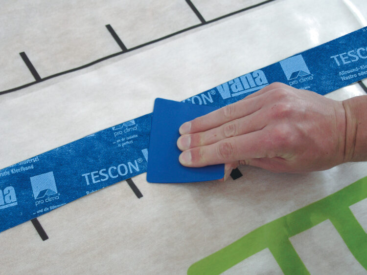 Finally, high-quality air barrier tapes and sealants are essential for ensuring airtightness at joints, seams and penetrations. These specialist products are designed to withstand movement, temperature fluctuations and exposure to moisture, providing long-lasting airtightness. For example, Pro Clima’s tapes, such as Pro Clima Tescon Vana have been independently tested with an expected lifespan of at least 100 years.