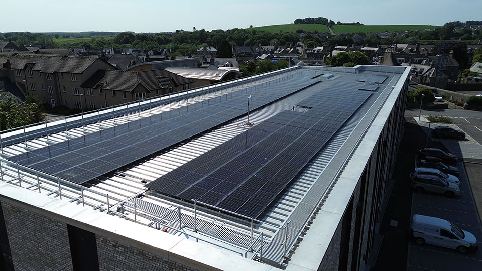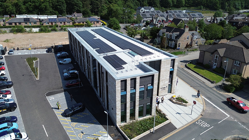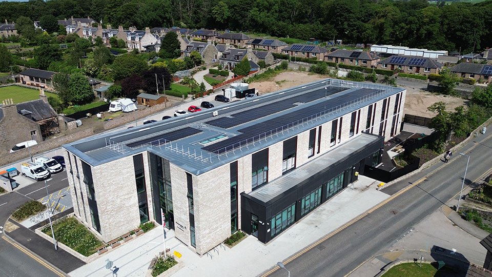 The two-storey £11.4million development in Ellon provides the community with a new family resource centre, library and council offices, representing an important part of the wider masterplan for the area. It has been designed to elevated sustainability standards to reflect its significance, with the aim of achieving ‘net zero’ in operation through the incorporation of renewable energy systems, including photovoltaic (PV) panels, heat pumps and heat recovery ventilation, as well as a highly insulated and airtight envelope to minimise energy use.