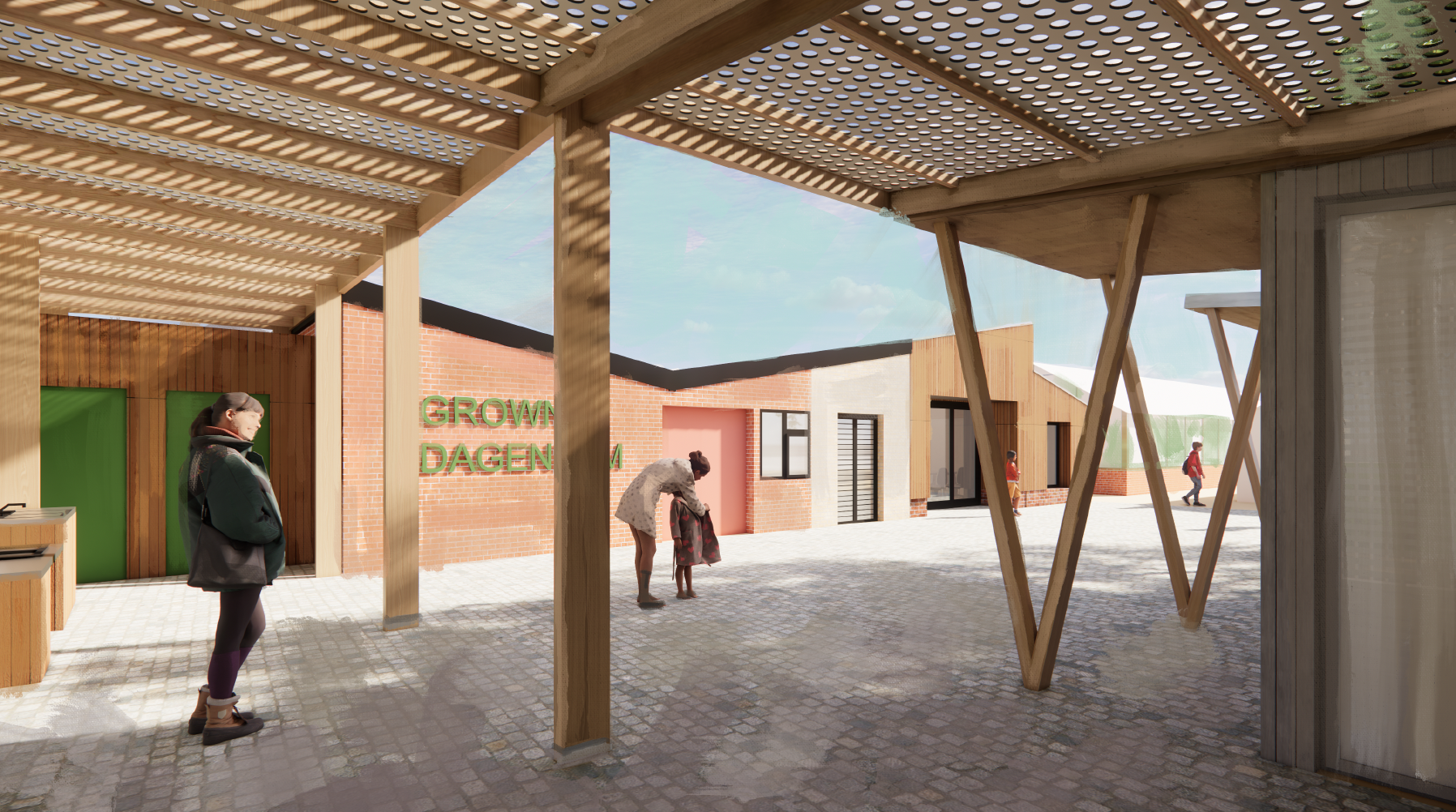 Growing Communities is a non-profit organisation committed to building a just, sustainable food system. Dagenham Farm exemplifies this mission through hands-on education, volunteering, and local food production – helping residents improve their health, well-being, and environmental awareness. Despite its proven success, the farm is currently constrained by a lack of fit-for-purpose infrastructure: outreach and school programmes are limited by inadequate classroom space, insufficient sanitation, and a poorly defined and inaccessible entrance area.