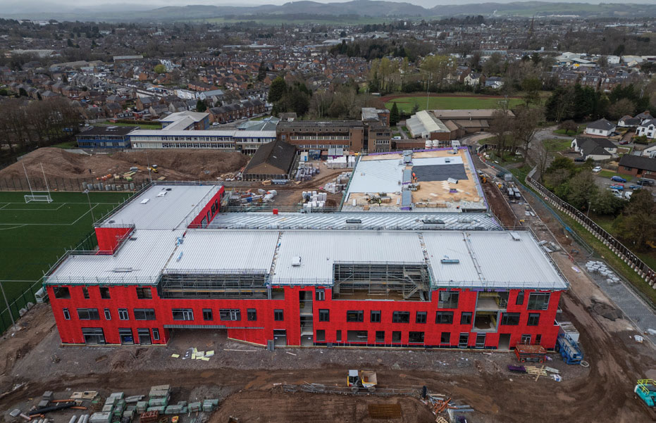 The Wraptite membrane at Dumfries High School was the responsibility of specialist contractors Cairnhill Structures, as part of designing, supplying and installing the complete structural framing system and other associated works.
