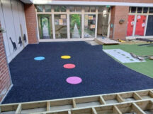 Kennet Nursery’s courtyard had persistent issues with water ingress beneath soft play surfacing and decking. A detailed SOPREMA core and condition survey identified multiple failures: low termination heights, ineffective drainage, and aged waterproofing assumed to be asphalt.