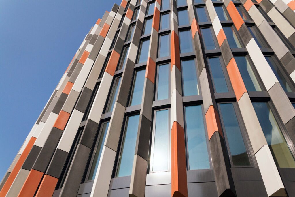 For instance, brise soleils and vertical fins should be incorporated to reduce solar gain on glazed elevations, while openable windows with acoustic ventilation panels to support natural or hybrid cooling must also be a consideration.