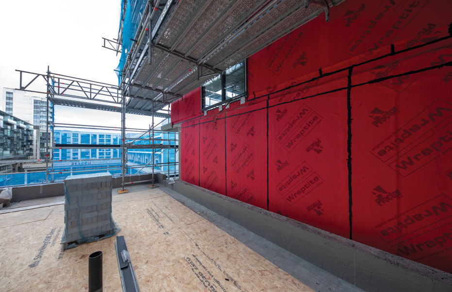 Wraptite has always been a feature of the facade specification at Rockbrook Apartments – and it was originally complemented by an internal membrane acting as a vapour control layer (VCL).