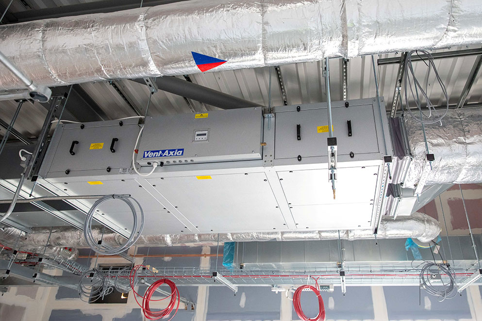 A brilliant fit for the Carmarthen Health and Wellbeing Hwb project, the Vent-Axia Sentinel Apex is the next generation of commercial heat recovery ventilation, providing specifiers help in creating low-carbon buildings. The Sentinel Apex is specifically designed to have a high level of energy efficiency with industry-leading SFP and low embodied carbon. Individuals using the Carmarthen space will find maximum occupant comfort as this has been a priority for the development of the Sentinel Apex unit, operating quietly whilst improving indoor air quality.