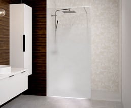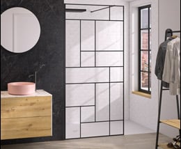In addition to standard glass, two stylish privacy glass options – Cosmos and Weave – feature frosted designs that lend themselves perfectly to the bathroom in the bedroom trend. Patterned glass is also making a comeback and the Art Deco glass from the Solo Design + range features a stunning gold pattern which partners beautifully with the brushed gold profile. For a more industrial style why not choose the Mondrian glass with black profile, Or our fluted glass makes a spectacular statement and can be paired with any of the 5 profile colours to create your perfect bathroom.