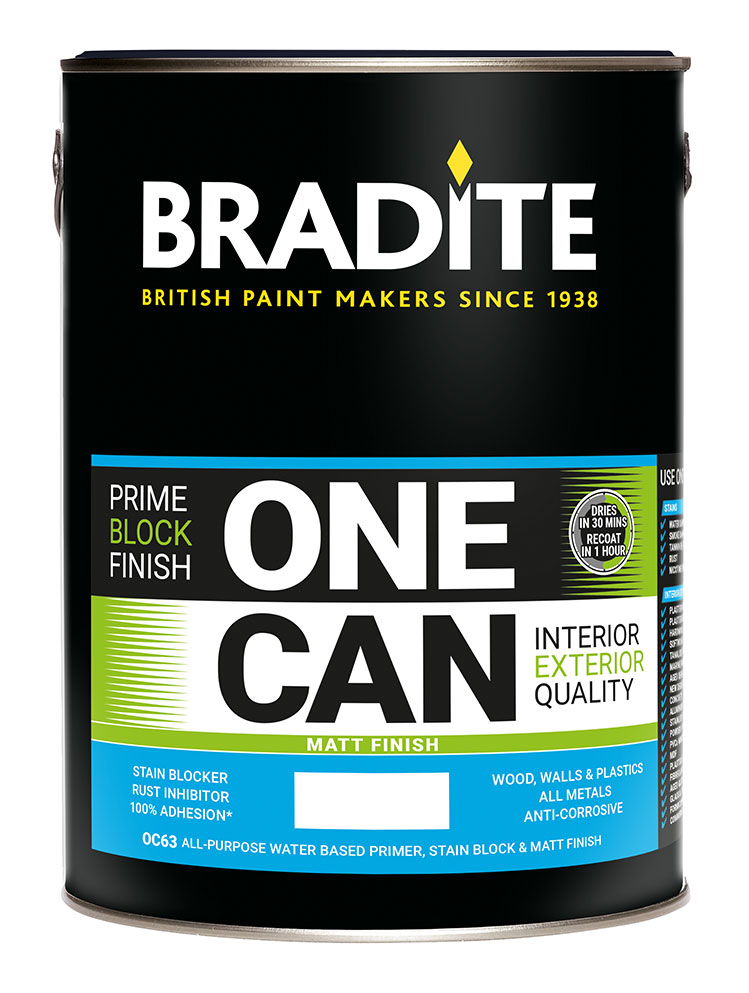 One Can – Matt is a primer, stain blocker and matt finish, all in one can. Water-based, this product is virtually odourless and is touch dry in as little as 30 minutes, with recoats possible after just 1 hour.