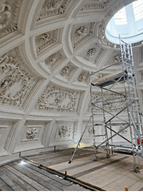 Following extensive monitoring and investigation, structural repairs and cosmetic remediation to areas of structural damage began in 2024 – along with other necessary repair and maintenance works, as identified in the Quinquennial Report, to make use of the scaffold access provision and the necessary closure period. These works have relied on the traditional skills and knowledge of the entire design team. In particular, the involvement of craftspeople skilled in traditional lime plaster and stonemasonry was crucial to realise the repairs sensitively.
