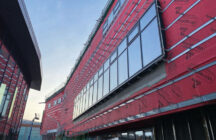 The building featured three main types of external wall build-up: steel frame construction, blockwork, and cross-laminated timber (CLT). Common to all three was the placement of the insulation and air barrier to the outside of the structure, contributing to the target U-value of 0.14 W/m2K.