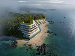 “Informed by the site’s remarkable topography, the design is a continuation of ZHA’s ongoing research of composition and materiality that is driven by explorations of landscape formations evident in nature. The stepped canopies of the hotel gently transition from the unique geology of the shoreline to the dense vegetation of the rain forest—giving uninterrupted views of the ocean and a deep connection to the surrounding environment, while providing a sense of privacy that enriches user experience and charts a journey through the varied natural ecosystems of the region.”