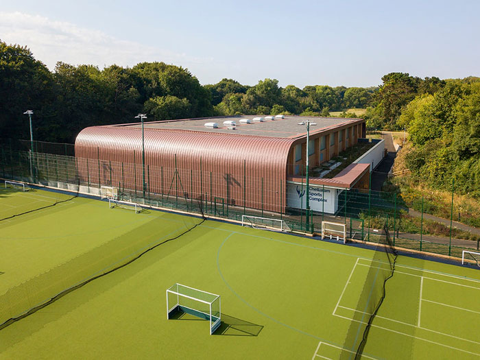 Chelleram Sports Complex, Dublin White water rafting centre and Saol San Aer in Shannon all demonstrate how standing seam panels can be used to wrap a building from a soffit to a façade and a low slope roof. Whereas the Emily Museum and New Teaching and Workshop buildings at Oxford Brookes University use rainscreen panels that give an entirely different aesthetic to a façade.